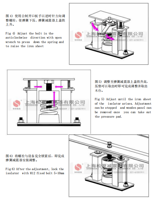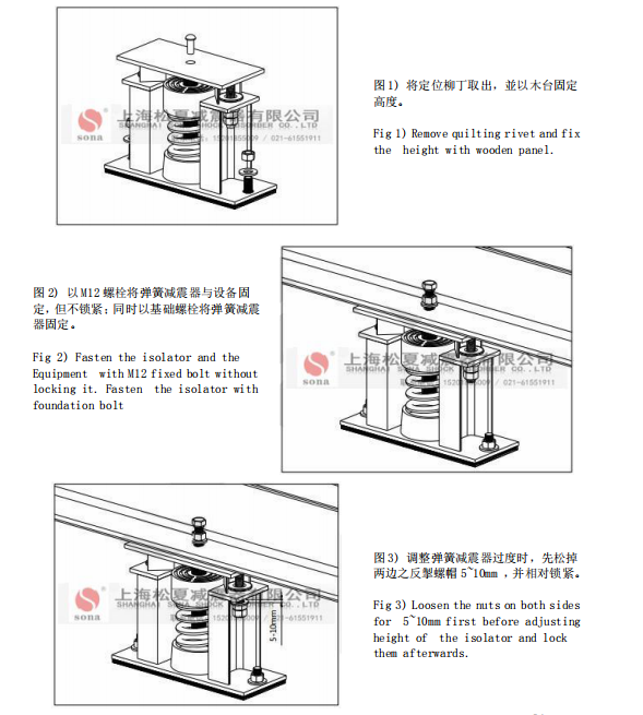 簧减振器 厂家都会在弹簧减振器产品包装中放置说明书,和其他工业产品一样,产品说明书内都会配有产品的安装图。以下就以弹簧减振器知名厂家——上海松夏减振器为例,为你展示ZTF弹簧减振器 安装图样,详情如下图: